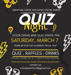 Come support the Manitoba Canoe and Kayak Centre with a Quiz Night on March 7 at Riverview Community Centre