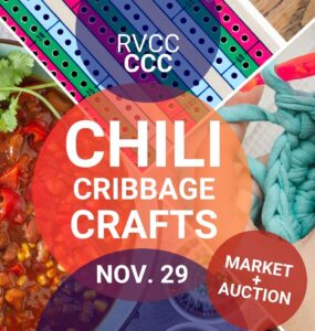 Get ready for the RVCC C.C.C. coming November 29th! The event will kick off with the crib tournament starting at 2pm, followed by chili tasting for the epic chili cookoff at 5:30pm, and the silent auction for crafts...