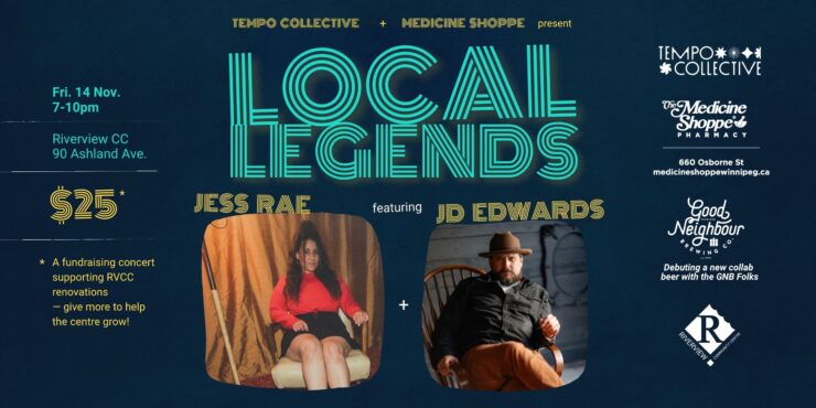 This is just the start — we’ve got more shows lined up for winter and spring! Each one’s a chance to catch incredible live music, connect with friends, and support something that truly matters: the ongoing renovations that will make Riverview Community Centre safer, greener, and even more welcoming for everyone.